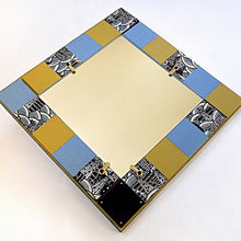 What is an art mirror? It's a functional piece of art - a mirror that is as much about wall decor as it is about function. The boarder of this art mirror has a square motif with each section hand painted a different color. Some of the squares are covered in Japanese paper (washi) that has a retro modern pattern. This decorative boarder is in chartreuse, black, blue, and with the washi accents. This piece hangs on the diamond and will soon become your favorite mirror to use everyday! I know from experience and feedback from my customers that you will find much joy in using a creatively designed mirror that doubles as a piece of art in your home. Perfect for your entry, hallway or really treat your guests by hanging in your guest room!